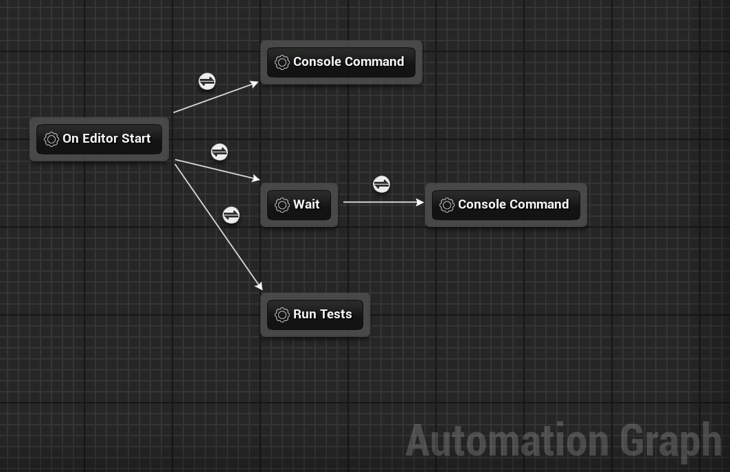 I later generalized the Houdini graph code into a framework for Unreal Engine automation. This framework does not have any dependency on Houdini Engine and adds additional functionality like trigger nodes that can cause a graph to execute on editor startup, and a node for executing unit tests.