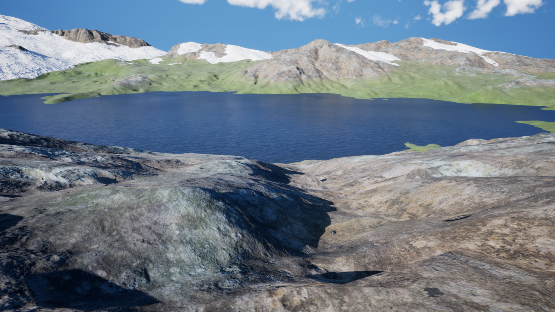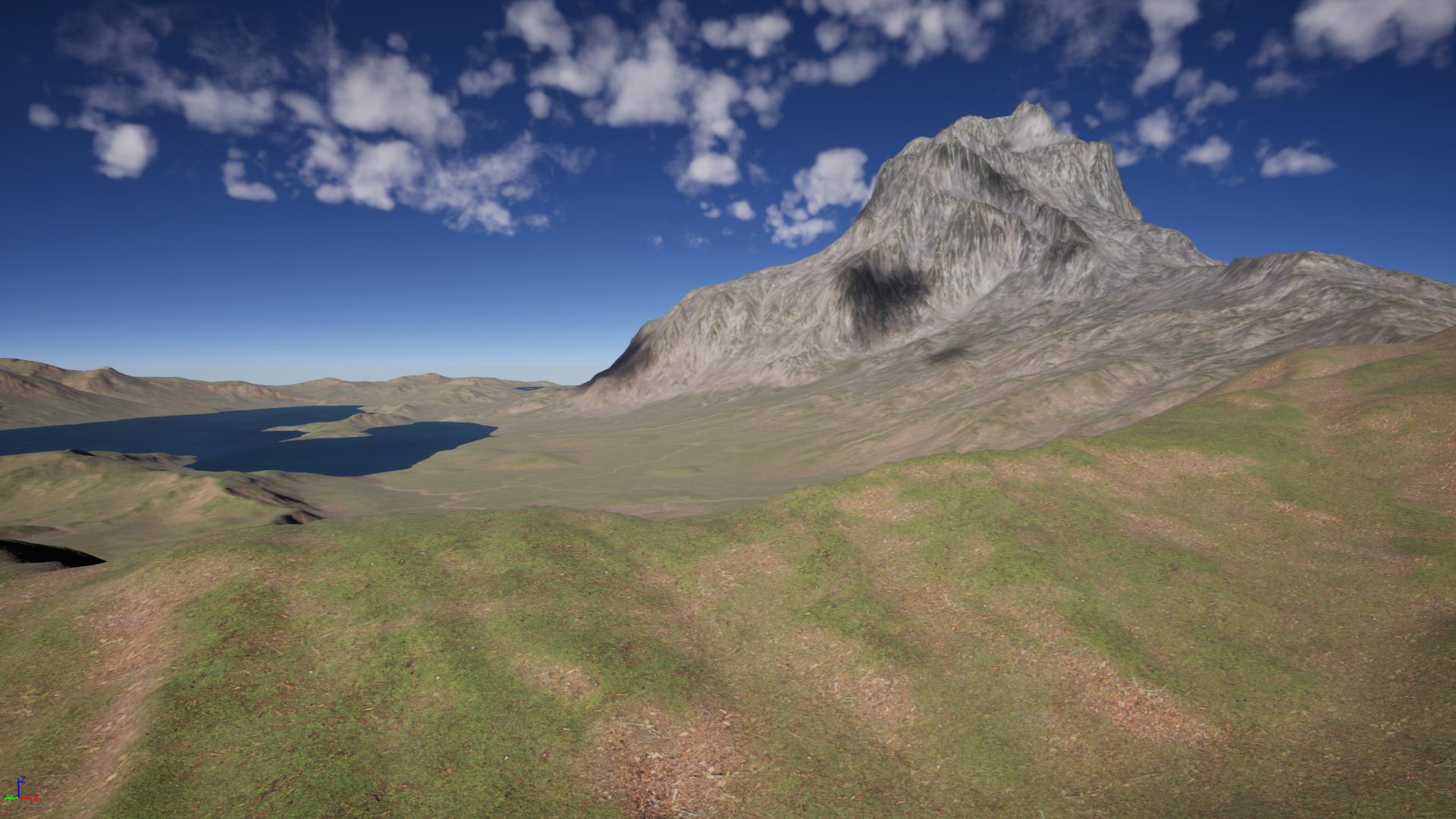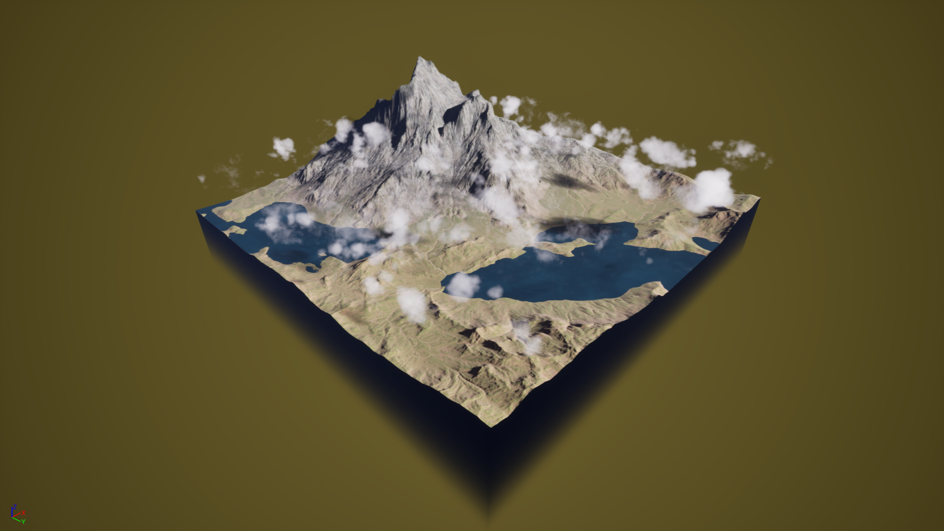 My general workflow when creating terrain to produce heightmaps using Quadspinner Gaea, add additional procedural features such as rivers, paths, and clouds in Houdini, then set up detailed landscape materials in Unreal Engine.