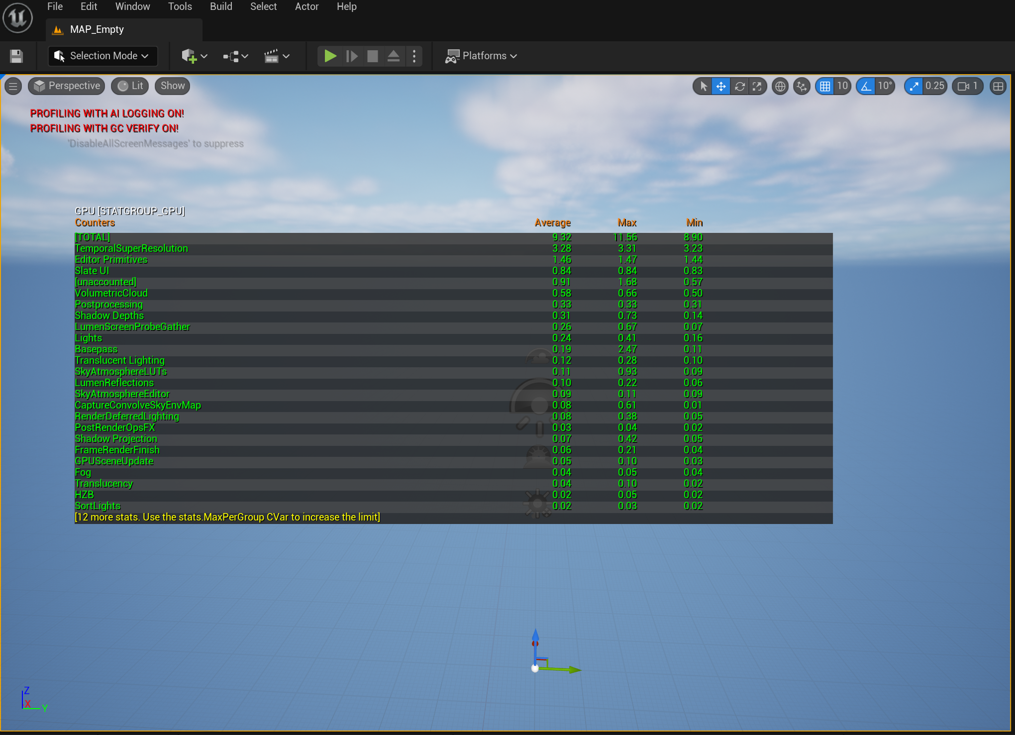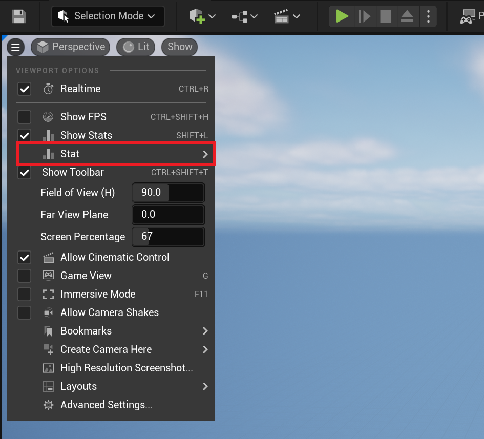Alternatively you can enable via the console. If you use the -nodisplay flag, you can get the system to collect your stat without actually displaying anything: stat YourStat -nodisplay. However, I want my stats to always be collected. I figured maybe I could just write some code that fires on world create to call this stat command and force the stat on: