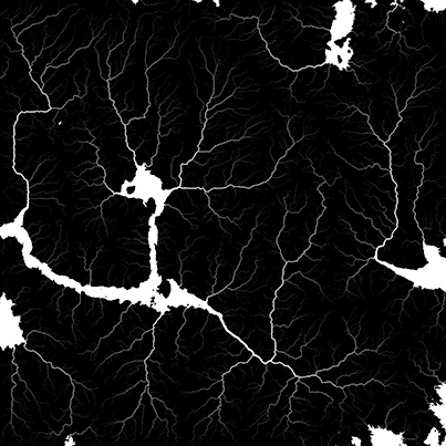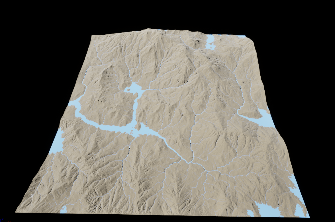Under the hood, each paint layer is represented as a weightmap which is just a greyscale image where each pixel is an 8-bit value ranging from 0 (pure black) to 255 (pure white). So for example, I have a simple landscape here where I have manually painted some weights into the water layer: