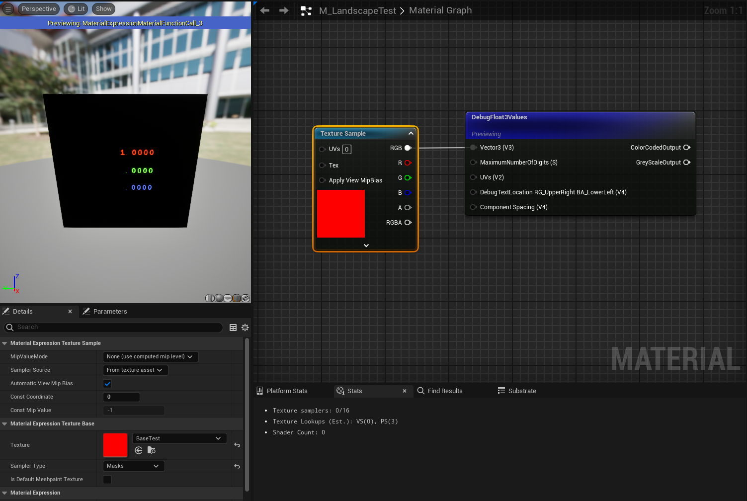 1) Exporting a fully painted paint layer from unreal, which results in a pure-white mask image. 2) Reimporting this weightmap image and setting texture compression settings to Masks (no sRGB). 3) Sampling the texture in your material graph and hooking up the results to a debug node.