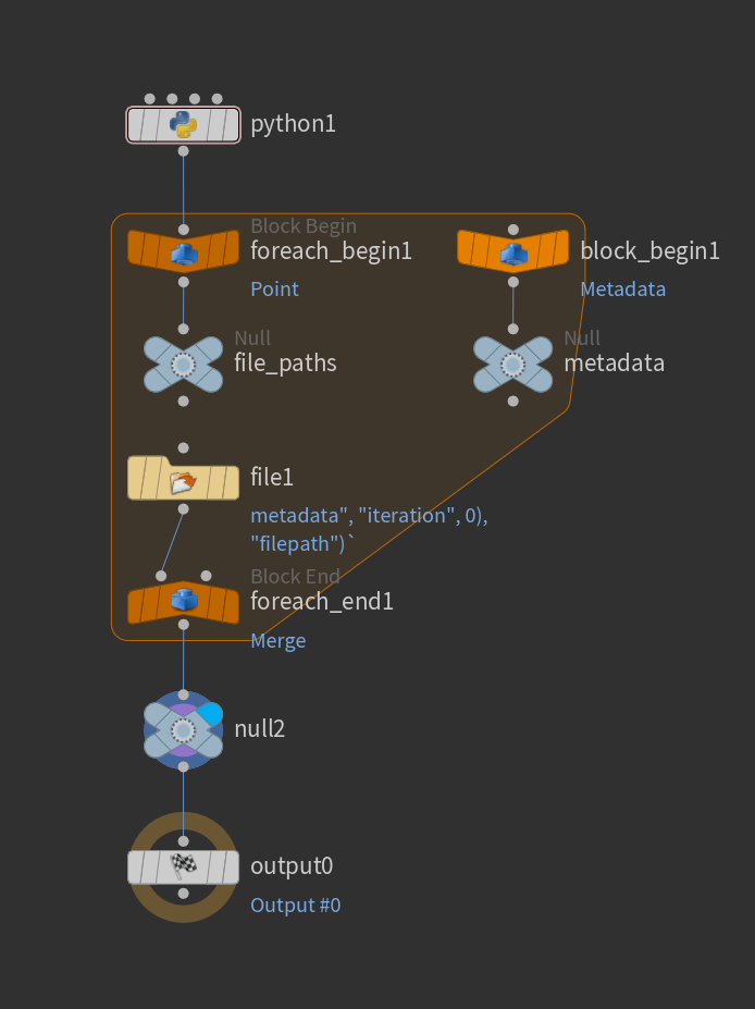 The node itself is fairly simple: it just scans through files in the specified directory and creates a point attribute for each matching file. Then, it runs a foreach node loop and loads each file.
